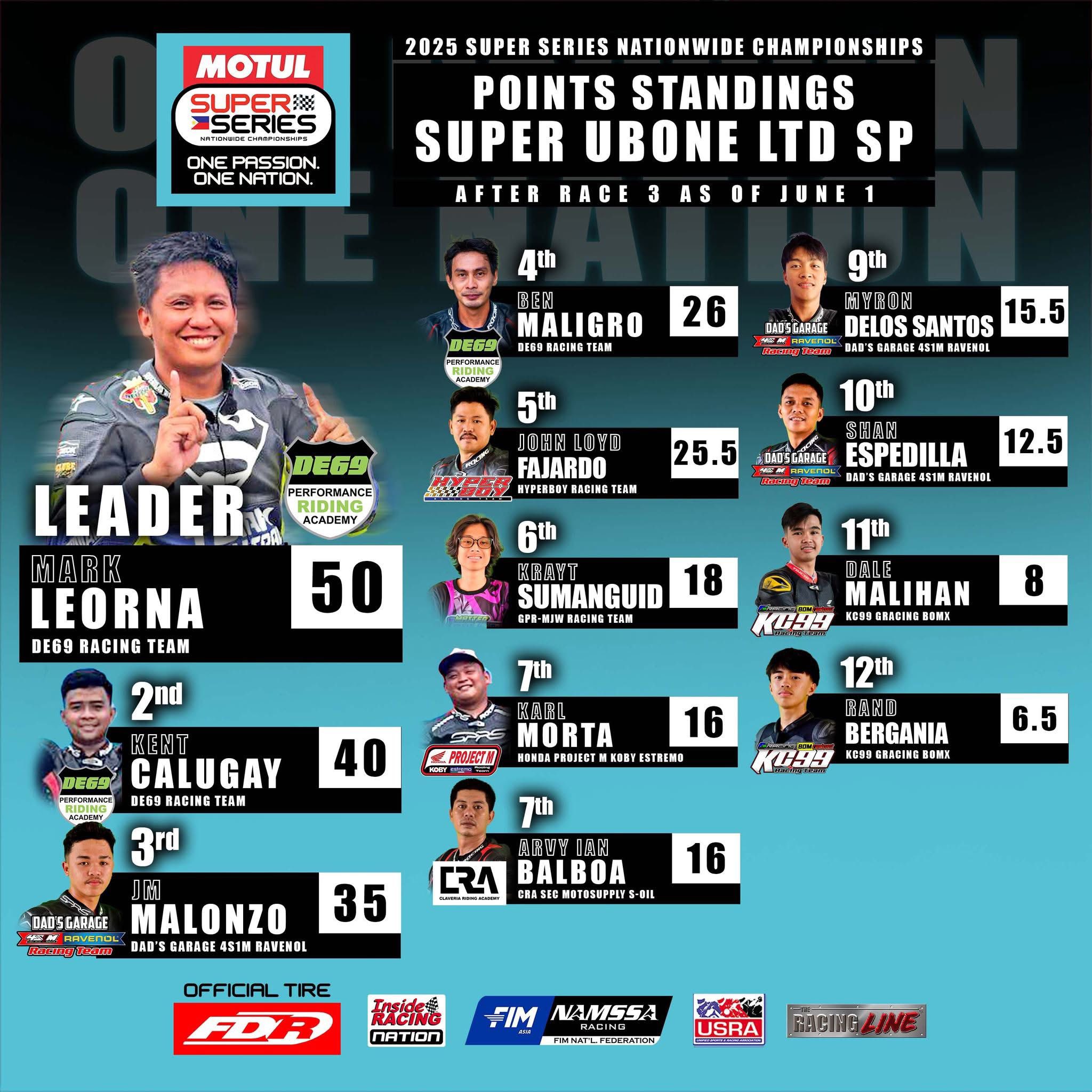 Motul Super Series Nationwide current Championship Standing